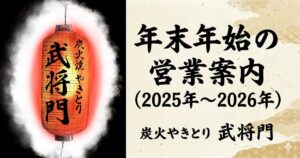 いつも炭火やきとり武将門をご利用いただき、ありがとうございます。